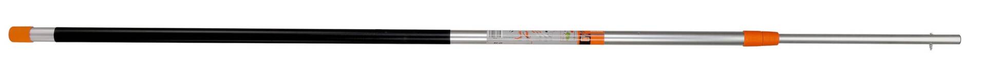 Die Teleskopstange besteht aus starken Aluminiumrohren. Es verfügt über eine stufenlose Längenverstellung und einen sicheren Verschluss. Der Durchmesser des Oberrohrs beträgt 25 mm. Gefaltete Länge – 210 cm, und wenn es vollständig entfaltet ist – 520 cm. Gewicht – 1,54 kg.